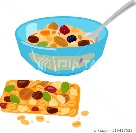 ボウルに入ったグラノーラとグラノーラバー