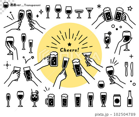 シンプルな乾杯・飲み会のイラストセット お酒 アイコン 手 ビール ワイン グラス アルコール