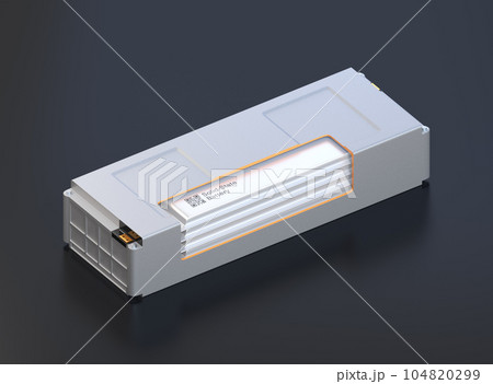 黒バックに電気自動車向け全固体電池モジュールのコンセプトイメージ