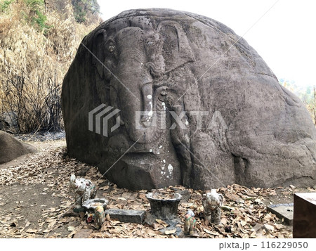 ラオスの世界遺産「ワット・プー」象の彫られた岩