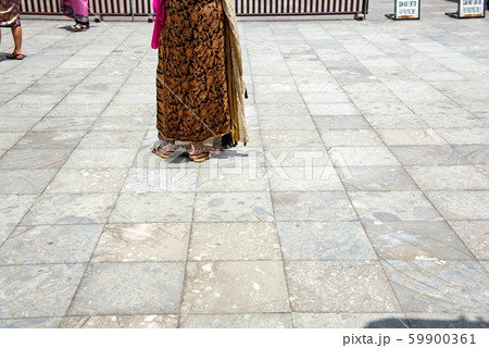 インドネシア バリ島 ティルタ・エンプル寺院の境内でたたずむ人 お祈りする人々