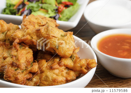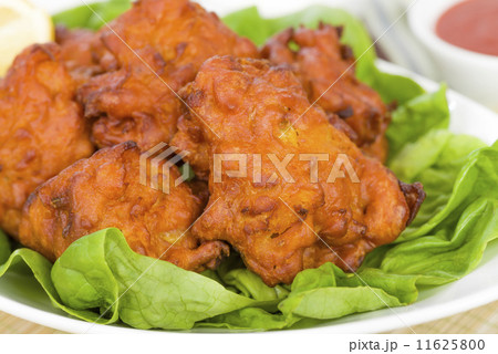 Vegetable Pakora or Bhaji with crunchy salad & chili sauce