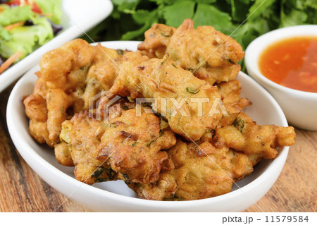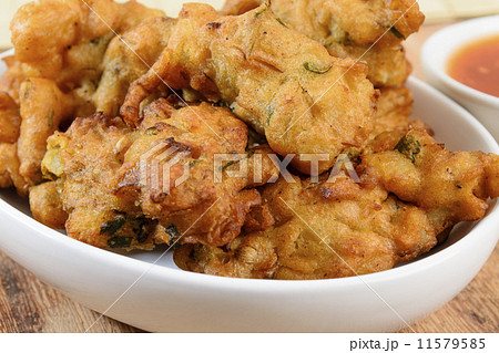 Popular street food item mix bhajiya snacks or Pakoda or Pakora Alu bhajiya