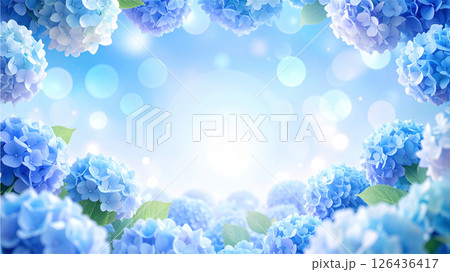 ボカシと日差しを効かせメルヘンチックな紫陽花の背景