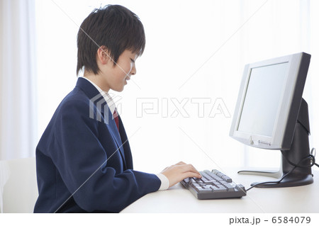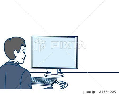 パソコンを利用するデジタルネイティブの男のイラスト素材