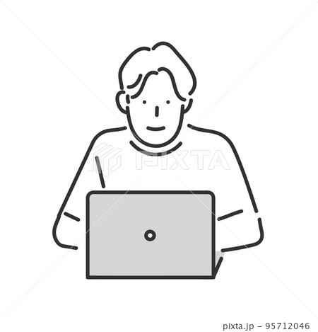 ノートパソコンを操作する男性のイラスト素材