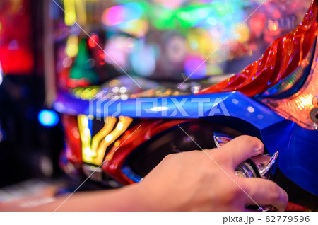 パチンコ スロットを遊戯している手元(アウトフォーカス)