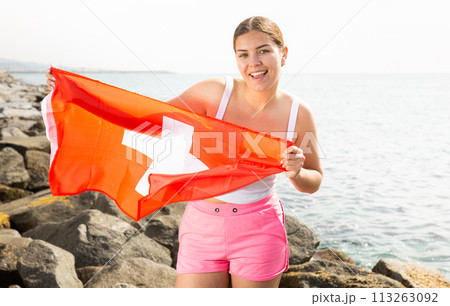 Flag of Switzerland with empty space on the left. Isolated. 3D Rendering
