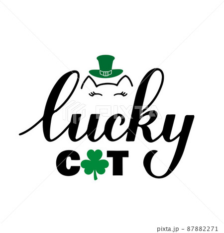 Lucky cat calligraphy hand lettering. Funny St. Patricks day quote typography poster. Vector template for greeting card, banner, sticker, flyer, t-shirt, etc