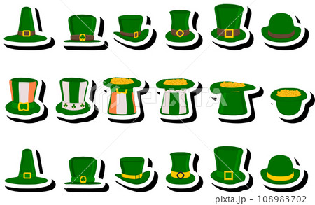 Set of St. Patricks Day hats with clover illustration on white background for design. AI