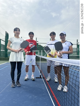 ピックルボールを楽しむ老若男女のイラストセット