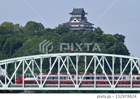 犬山橋を渡る 1200系パノラマスーパーと犬山城