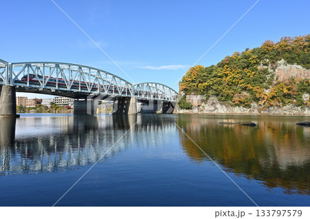 犬山橋を渡る名鉄1200系パノラマスーパー原色