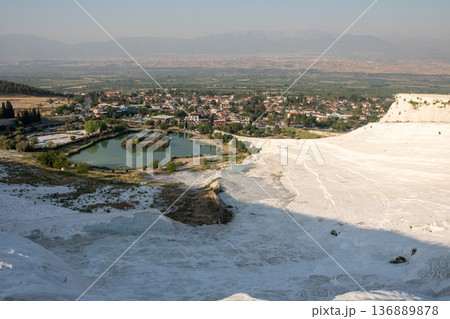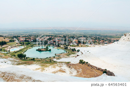 Travertines of Pamukkale and old town in Turkey