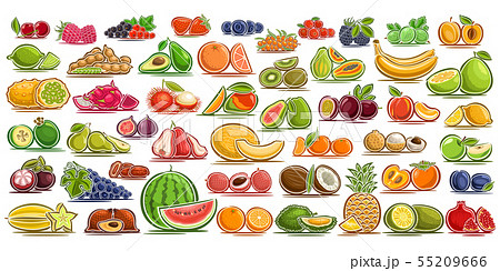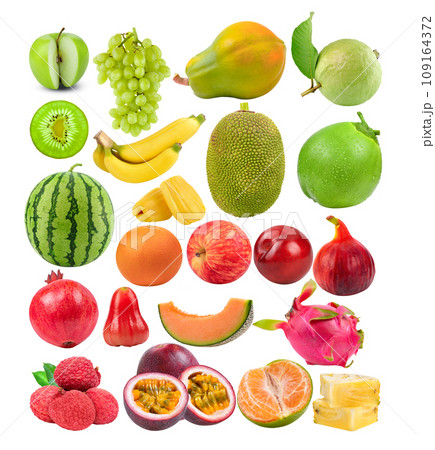 Jackfruit; apple; orange; Avocado; coconut; Lychee; Rose apple; cherry; Passion fruit; longan; pear; watermelon; papaya; melon; Nectarine; Grapefruit on white background