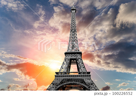 Eiffel Tower against the background of a beautiful sky at sunset. Paris, France