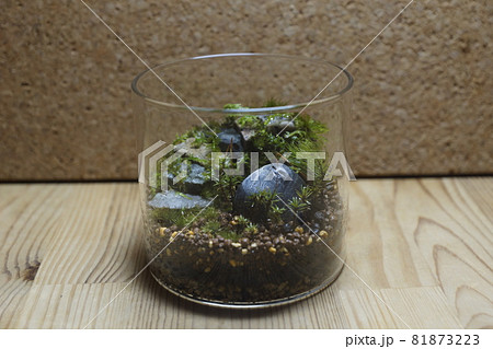 石の階段のある苔テラリウム 上からの写真