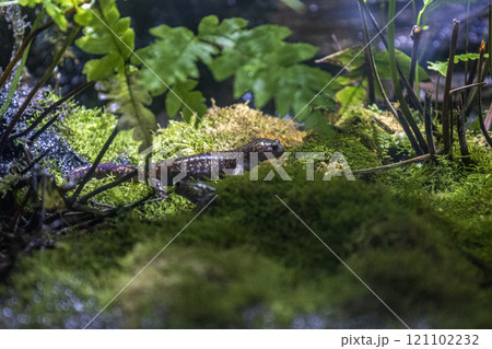 苔の生えた岩とイモリ パルダリウム
