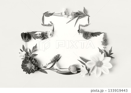 Demonstrating the colors of 2026 - Cloud Dancer. Flower background of flowers asters, dahlias, zinnia. Floral Greeting card. Nature trendy decorative design. Nature concept. Flat lay.