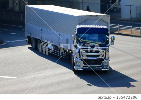 交差点を右折中のトレーラー イメージ