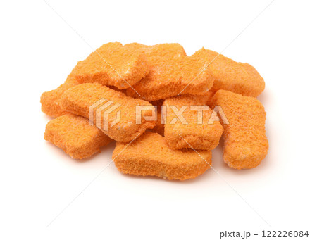 Closeup of golden and crispy Korean-Style chicken nuggets isolated on a white transparent background