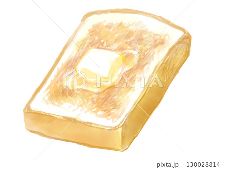 焼きたてで美味しそうなバタートーストの手描き水彩イラスト