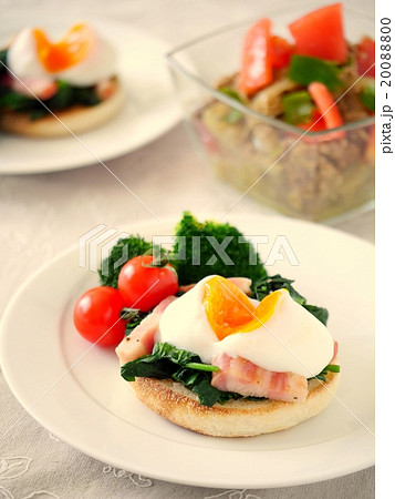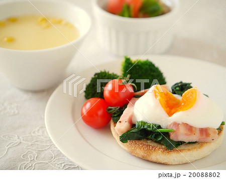 ホウレンソウと温泉卵のマフィン ランチ(ハイアングル)