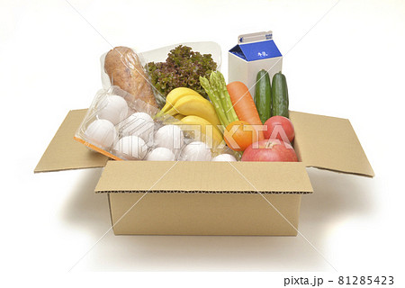 段ボール箱のいっぱいの食品