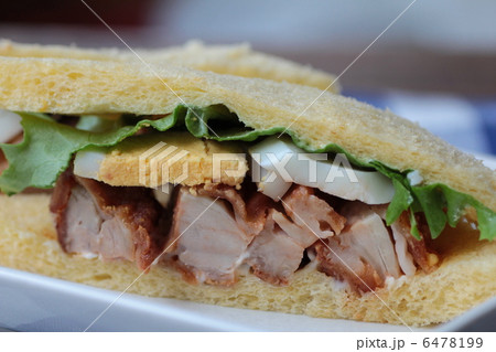 かぼちゃ食パンを使ったチキンとタマゴのサンドイッチ