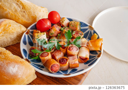 皿の上に載せたスタイリッシュなミルクフランスパン
