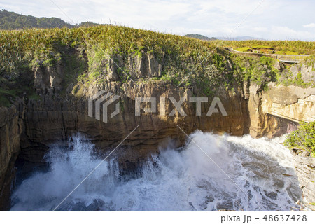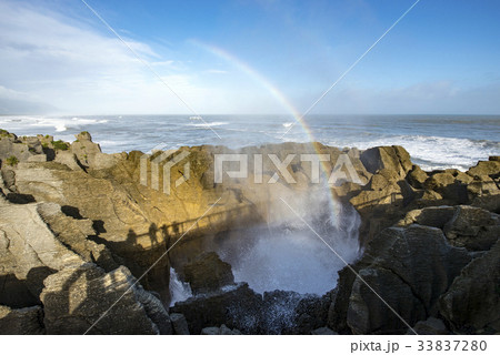 ニュージーランド ウェスト・コーストのプナカイキにあるパンケーキ・ロックスのブロウホール