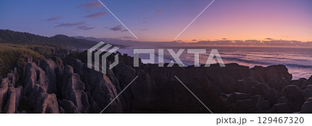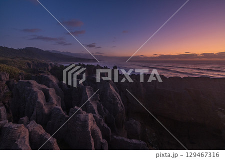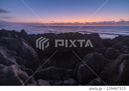 ニュージーランド プナカイキにあるパンケーキ・ロックスからのサンセット
