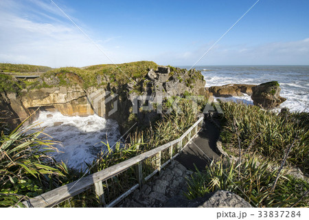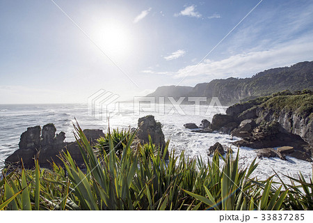 ニュージーランド ウェスト・コーストのプナカイキにあるパンケーキ・ロックスの風景