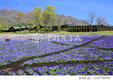 くじゅう連山とパンジー畑(大分県久住町・縦構図)