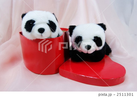パンダの縫いぐるみ2頭横位置