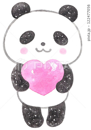 ピンクのハートを抱えるパンダ
