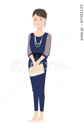 結婚式などに参加するためのパンツドレス姿の可愛い女性。