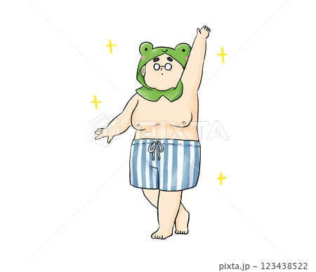 ジャンプして喜ぶ若い男性のポップでカラフルなイラスト