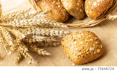 fresh bread and wheat on the wooden
