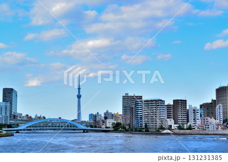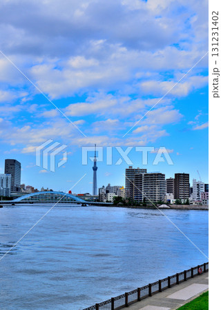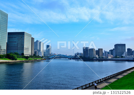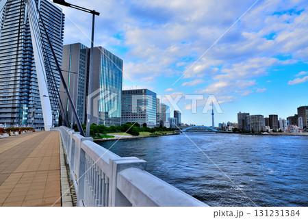 東京 隅田川 中央大橋からの永代橋とスカイツリー