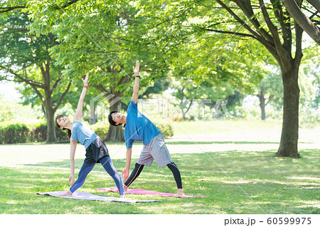 ヨガ カップル 美容 屋外 ビューティーイメージ