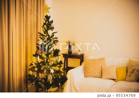 クリスマスツリー リビング 夜