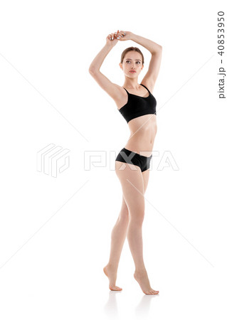 woman with perfect sporty body in black lingerie