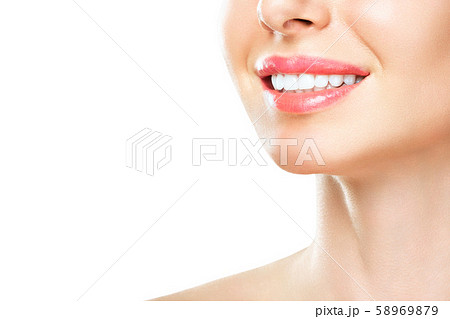 Perfect healthy teeth smile of a young woman. Teeth whitening. Dental clinic patient. Image