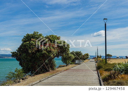 ニュージーランド ホークスベイ地方、ネイピアのアフリリのパーフューム・ポイントのビーチ風景