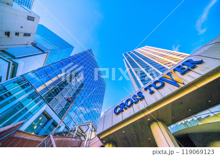日本の東京都市景観 渋谷アクシュなどを望む、左は渋谷クロスタワー=25日