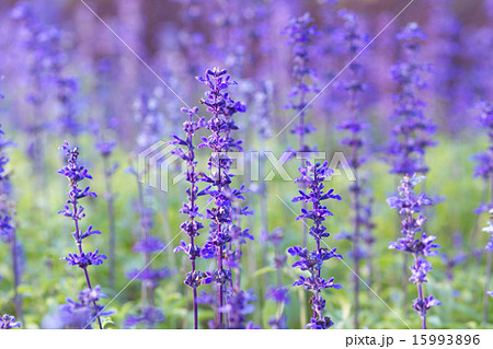 青紫色のサルビア・ガラニチカの花(夏、六月)