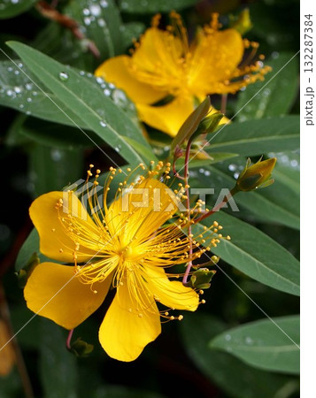 雨の6月に咲いた黄色いキンシバイ(金糸梅)
