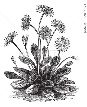Daisy or Bellis perennis, vintage engraving