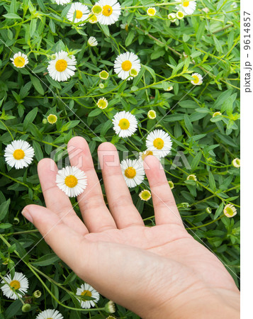 Beauty hand touch on little white Daisy
